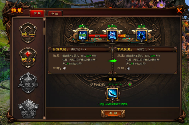 每个境界都能学习3个不同的魂技,魂技在所有万年以上魂兽身上都可能掉落。强大的魂技将让你PK,BOSS战都无往不利。