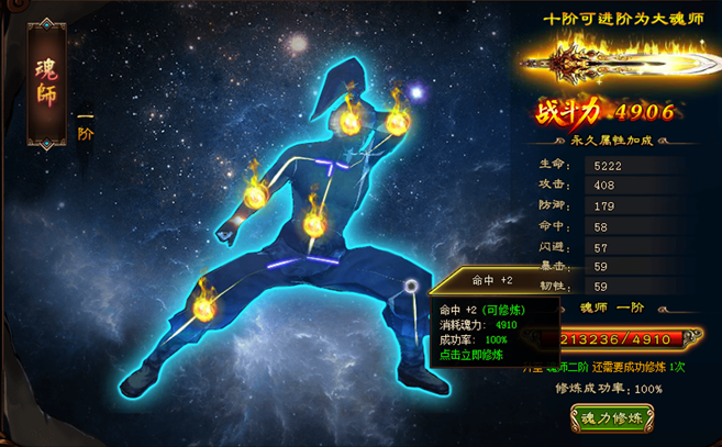 魂力是一种资源,也是区别于经验—等级体系外,另外一条基础能力培养线,魂力等级的提升需要消耗魂力手动点击提升,当达到指定魂力等级需要进行试炼任务才能继续提升魂力突破后,除了属性奖励外还可以学习更强大的魂技,并开启暗器、战弩、斗铠、魂导师徽章等原著中的特色装备部件。